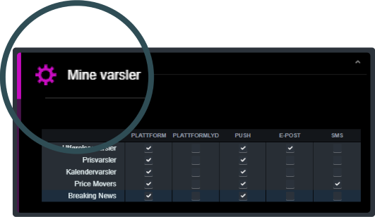 Våre varselsystemer gir deg beskjed når viktige kursnivåer brytes eller når dine ventende ordre utløses. Du kan få pop up-meldinger på plattformen, varsler på e-post, SMS eller push-varsler sendt til din mobiltelefon/nettbrett.