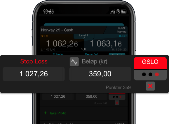 Utvalget av ordretyper gir deg mulighet for fleksibel ordreplassering og risikostyringsverktøyene kan tilpasses og er brukervennlige. Du kan angi standard Stop Loss- og Take Profit-ordre for å styre risikoen på hver handel. Merk at samtlige stop ordre alternativ unntatt garantert stop loss ordre er utsatt for slippage og gap.