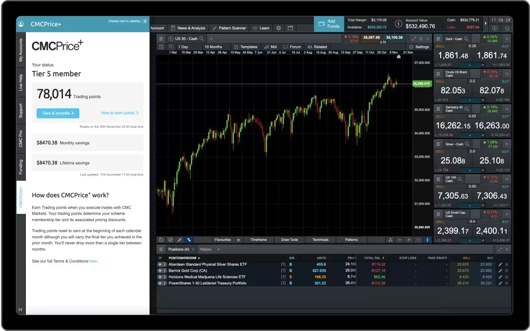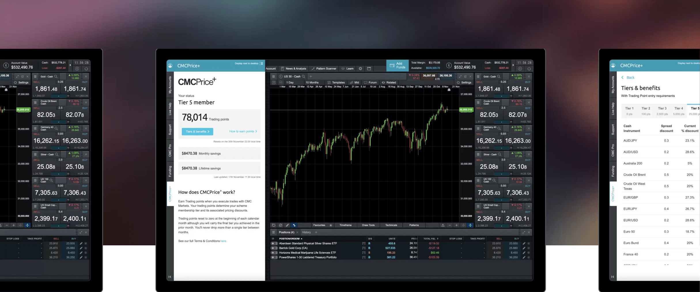 Once you have accumulated the required number of trading points for a specific tier, we will automatically apply the relevant spread discounts to your trading platform for our cash instruments, as set out in the table on the left. The trading point entry requirement can be seen directly underneath each tier name.