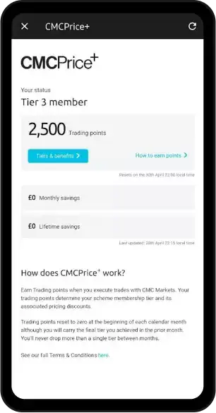 The Price+ scheme recognises your loyalty with access to reduced trading costs. You will earn points whenever you place a trade with us, as set out in the table on the right.