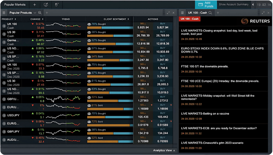Stay up to date with market-impacting news through our streaming Reuters newsfeed, plus market insights from our analyst and trading teams.