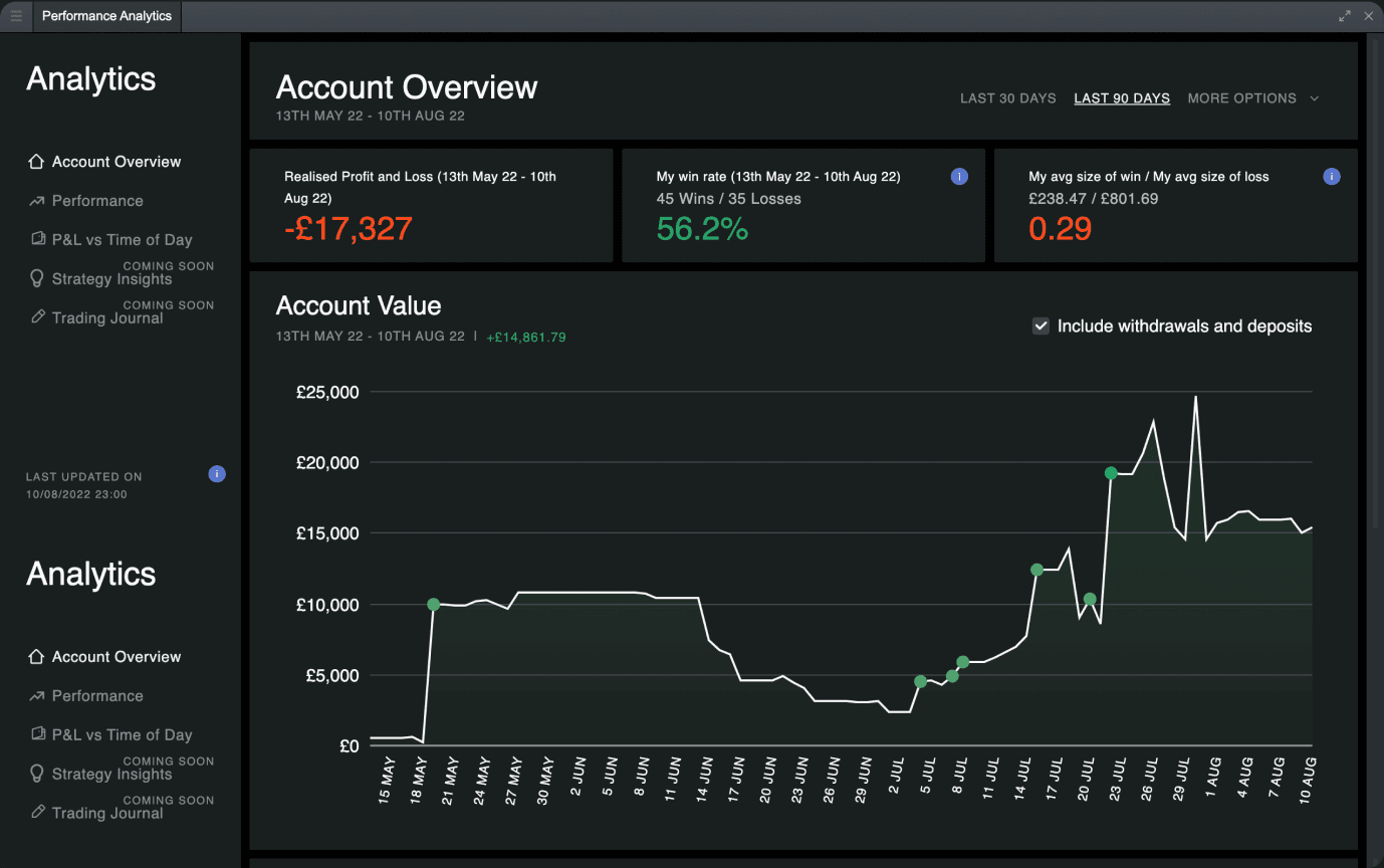 Analyse your trading history and view your data in an intuitive and meaningful way. Understand which trading behaviours and patterns are making you the most money, where your strategy may be leaking money, and your current level of risk.